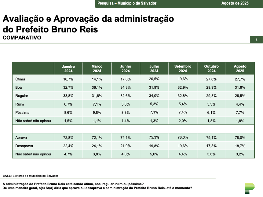 Ao ser questionado sobre críticas da oposição, que apontam desgaste político e crises na gestão municipal após embates com servidores públicos, como professores, Bruno negou qualquer instabilidade e reforçou que Salvador vive um momento positivo.