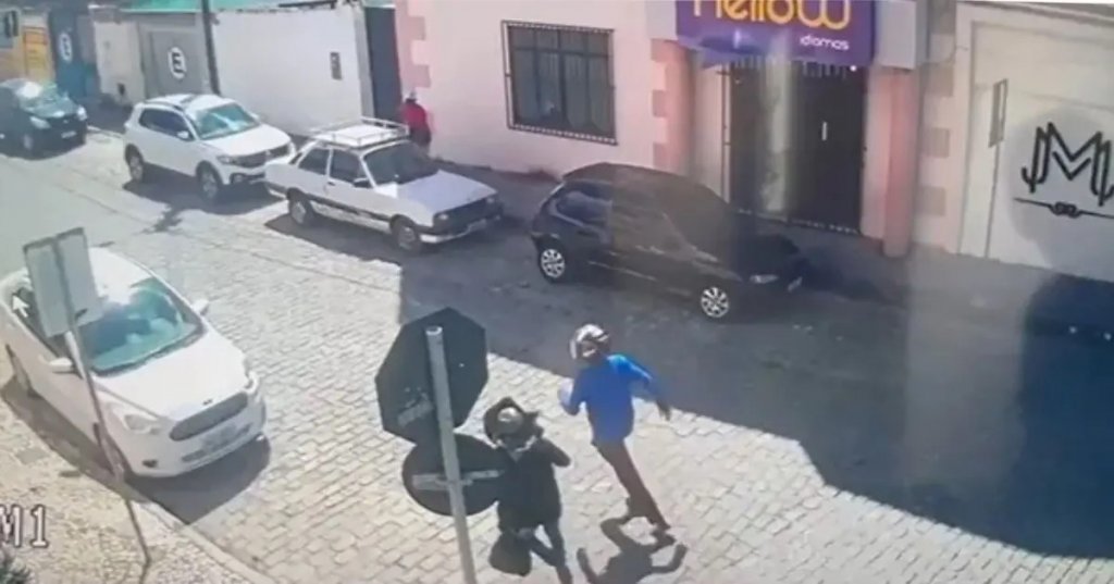 Uma colisão entre duas motocicletas no cruzamento das rodovias BA-409 e BA-411, em Conceição do Coité, no nordeste baiano, deixou um dos condutores ferido e o outro fugiu do local após ameaçar testemunhas com um facão. O acidente foi registrado por uma câmera de segurança na noite de sábado (30).