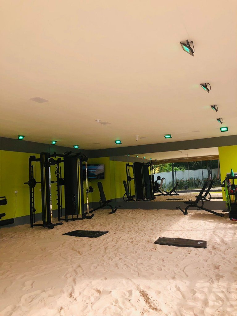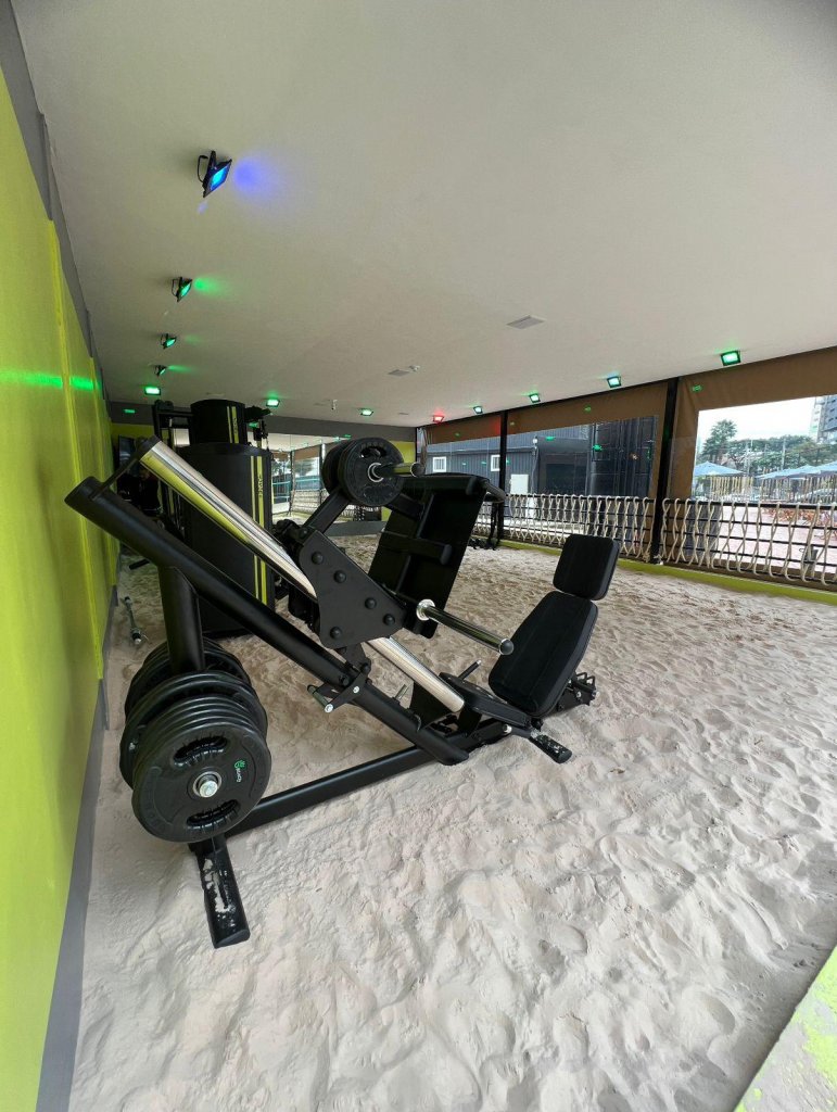 A proposta é replicar, em ambiente fechado, a dinâmica de exercícios praticados na praia. No espaço, as atividades reúnem musculação, treino funcional e cardio em um mesmo circuito, substituindo o piso tradicional por uma estrutura de areia.
