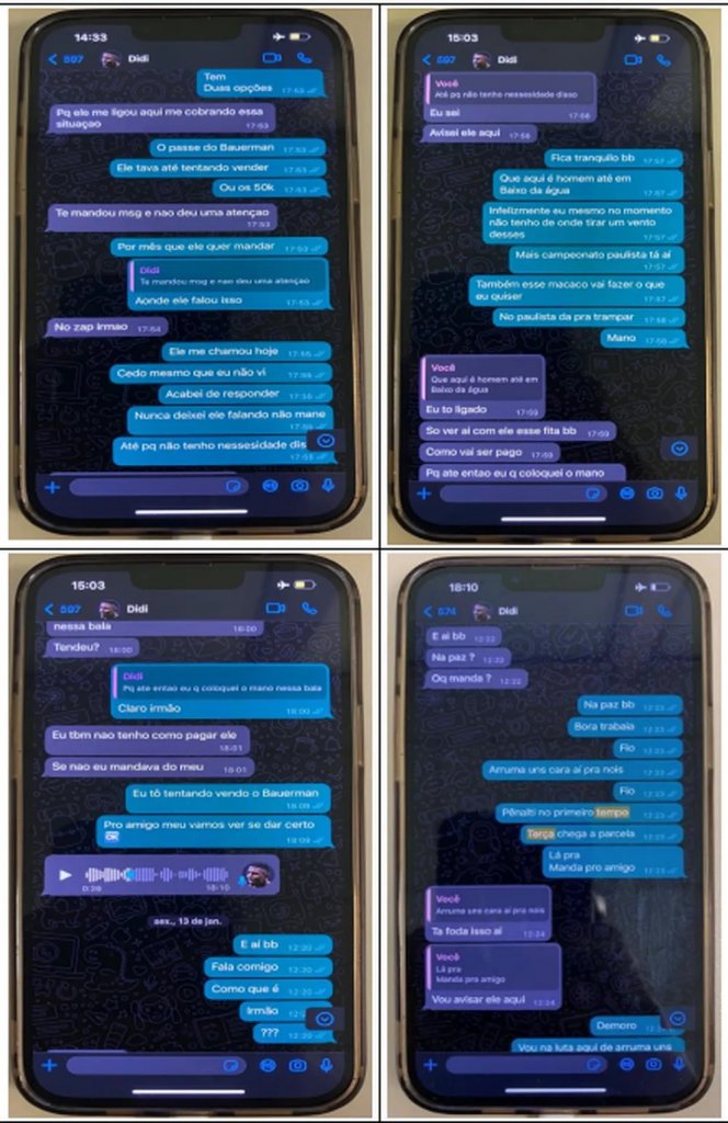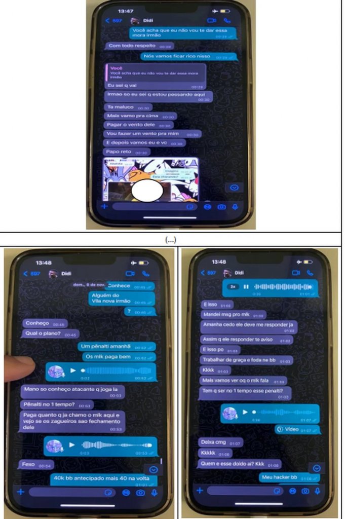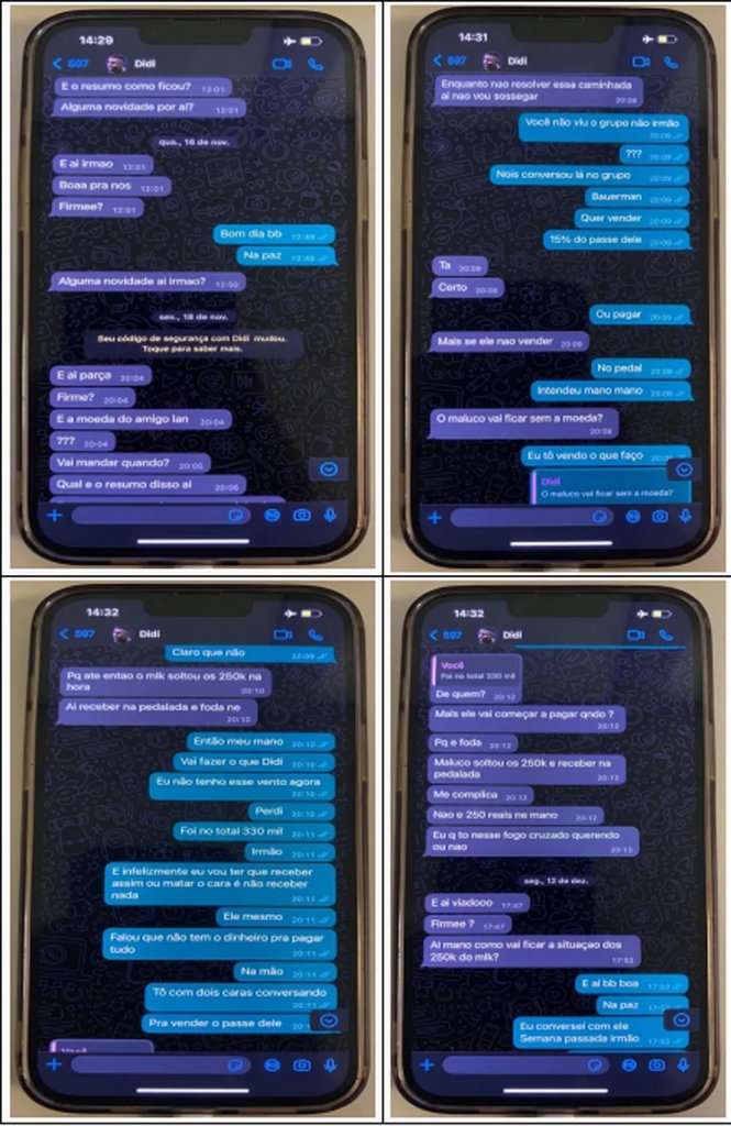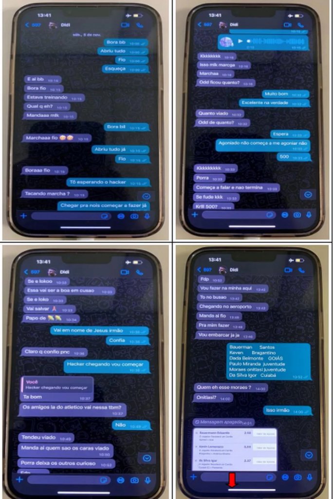 À época, Didi estava no Tricolor, durante a Série B de 2022. Nas mensagens, ele diz ter feito uma aposta combinada para que Eduardo Bauermann (Santos), Moraes (Juventude), Kevin Lomónaco (Red Bull Bragantino), Dadá Belmonte (Goiás), Paulo Miranda (Juventude) e Igor Cariús (Cuiabá) recebessem cartões na 36ª rodada do Brasileirão.
