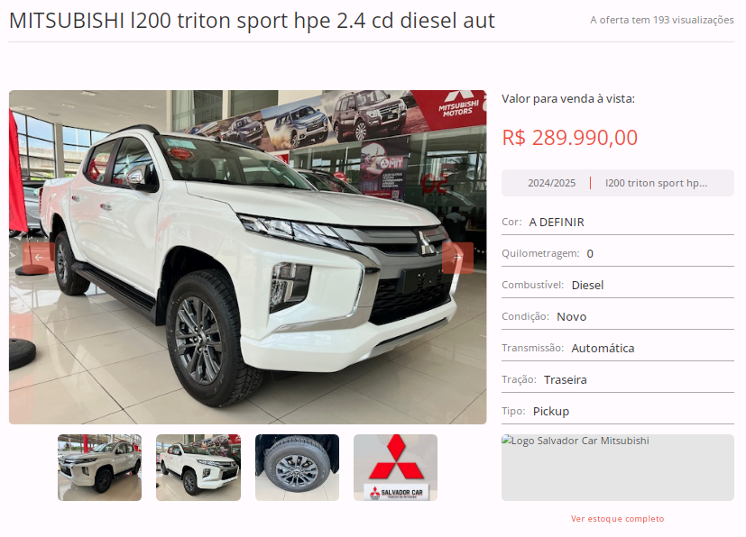 Entre as opções disponíveis em nosso site, está um MITSUBISHI L200 Triton, cor verde, ano 2024/2025, na loja Salvador Car Mitsubishi. Todas as informações de contato estão disponíveis na nossa plataforma.
