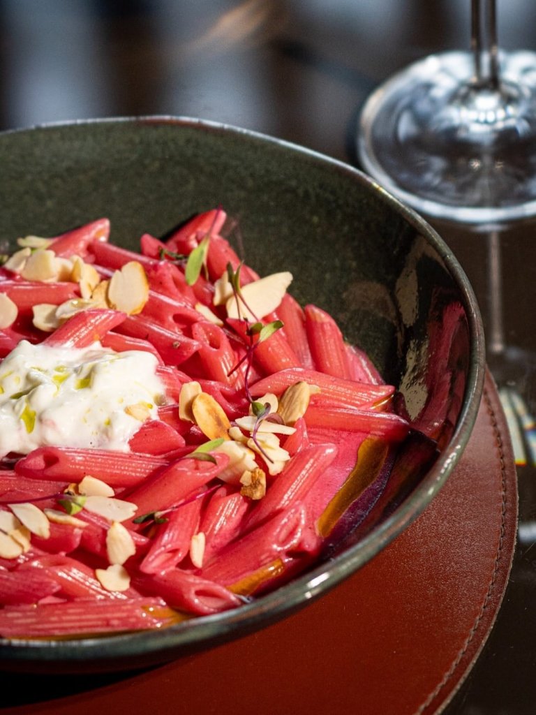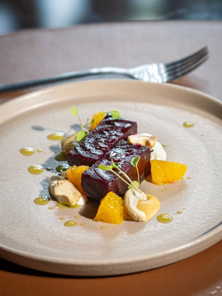 No almoço, entre as opções de entrada estão o kibe cru de atum com coalhada e cebolinha e o repolho na brasa com creme de castanha e farofa de curry thai. Como prato principal, o cliente pode escolher entre arroz de costela defumada com aioli de agrião e picles de cebola, copa lombo defumado com risoto de milho e salada de ervas ou penne em fonduta de beterraba com burrata e crocante de amêndoas.