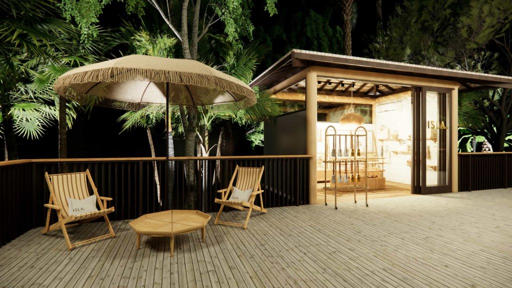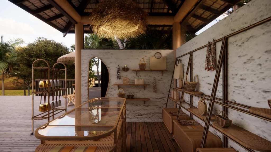 O espaço foi concebido especialmente para a ocasião, com um projeto que combina madeira, bambu, palha, fibras naturais e texturas orgânicas. Em harmonia com a arquitetura do hotel, a pop-up se integra ao fluxo do resort de forma discreta, transformando a visita em um encontro espontâneo com a marca.