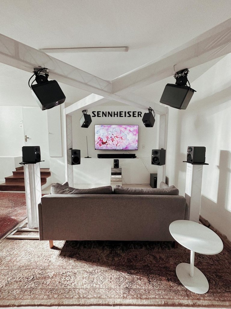 Com diversos ambientes, o espaço temporário oferece uma sala imersiva montada com tecnologia Dolby Atmos e monitores Neumann, além da Soundbar da marca que simula um sistema 7.1.4. Em uma outra sala, está um showroom com o portfólio de áudio profissional além de uma mostra onde é possível conhecer alguns fatos e avanços da história do desenvolvimento da indústria de áudio.