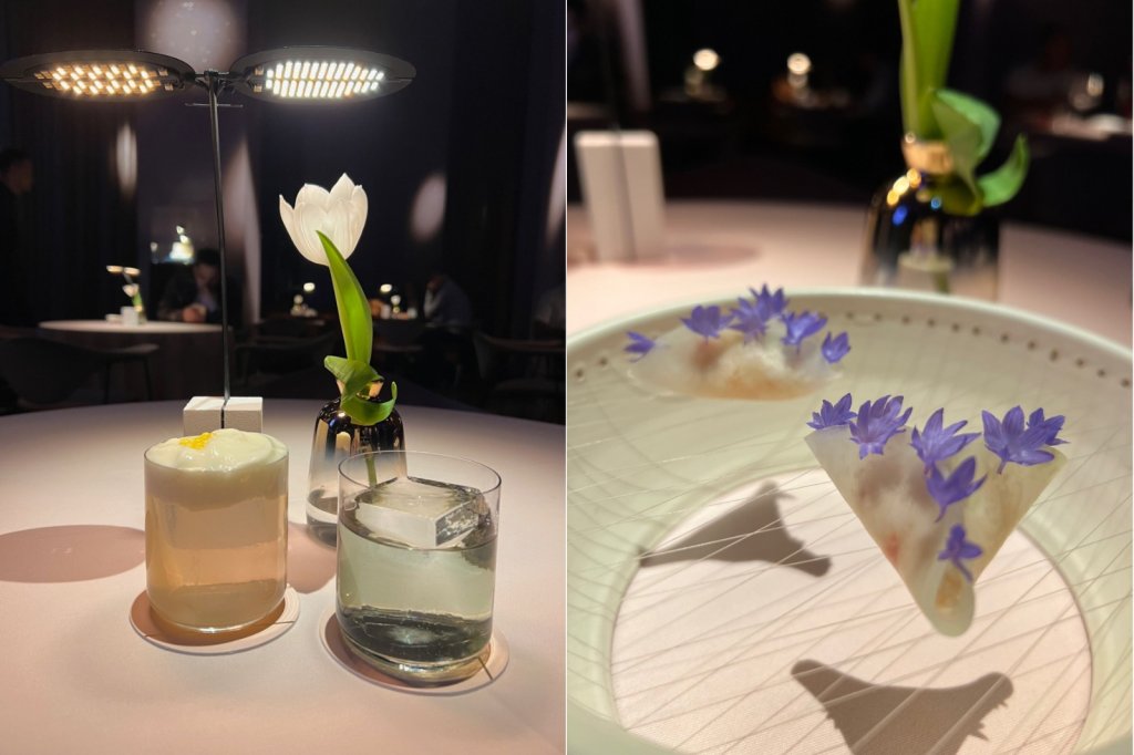 O menu degustação de oito tempos é uma ode à criatividade, apresentando combinações inusitadas e ingredientes de alta qualidade. Entre os destaques do menu principal, encontram-se: sashimi de pêssego com brotos de groselha preta em conserva, vieiras com aspargos do mar e caviar de limão, batata assada com ouriço-do-mar e caviar preto e o cheesecake de Yuzu com manga e espinheiro marítimo, finalizando a jornada com uma nota cítrica e refrescante.