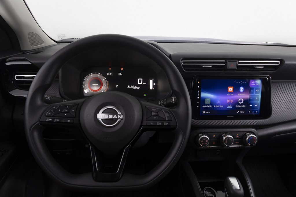 A Nissan quer garantir seu espaço no segmento mais concorrido do País. O Kait entra de vez na briga com Volkswagen Tera, Renault Kardian e Fiat Pulse, único com motorização híbrida no mercado. A Nissan oferece no Kiat Exclusive um amplo pacote de equipamentos de multimídia da marca Pioneer.