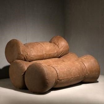 Seu trabalho combina a inconfundível estética brasileira com muita sofisticação. É isso que se vê nesta peça atemporal, cheia de volumetria e formatos orgânicos, fabricada em espuma e couro natural.