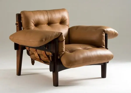 O móvel – criado em 1957 – é composto por uma estrutura de madeira de lei maciça torneada, com travessas que permitem a passagem de percintas em couro sola que, após ajuste com botões torneados, formam um apoio que suporta os almofadões do assento, do encosto e dos braços.