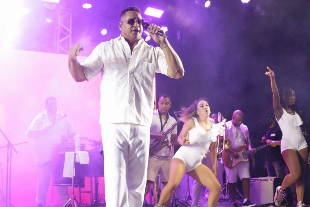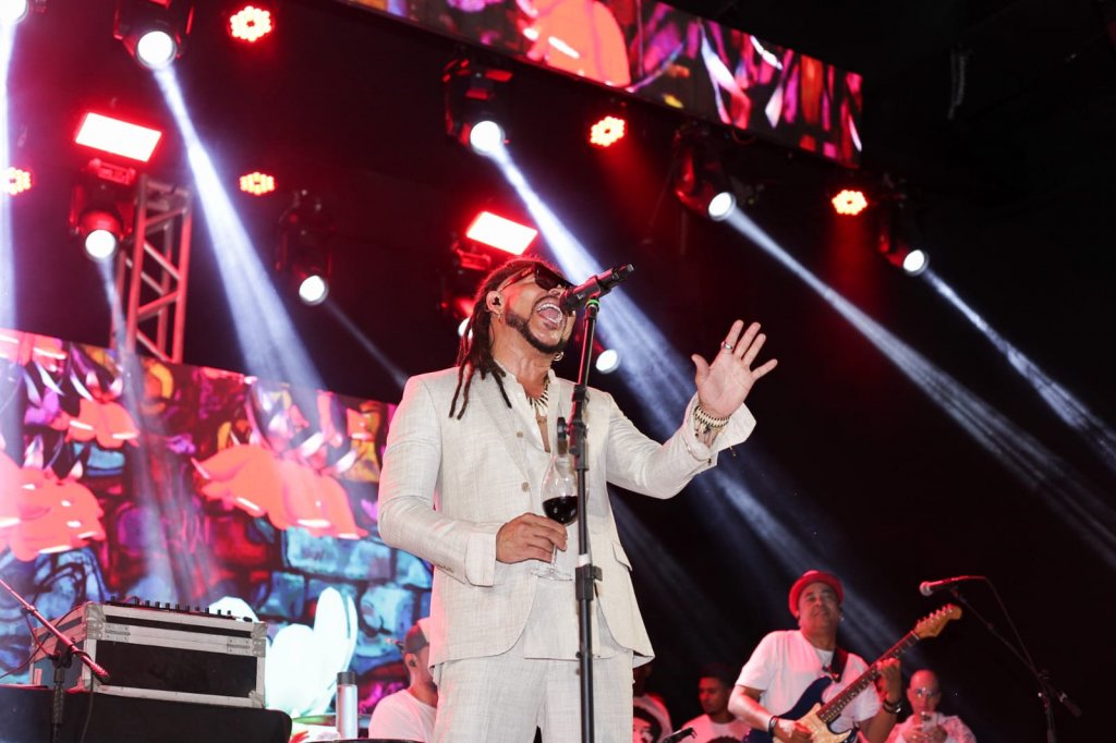 Luiz Caldas, reconhecido como o pai do Axé, abriu a noite ao som de grandes clássicos como “Ajayô” e “Tieta”, sendo também o responsável pela contagem regressiva para a despedida de 2024 e as boas-vindas a 2025.