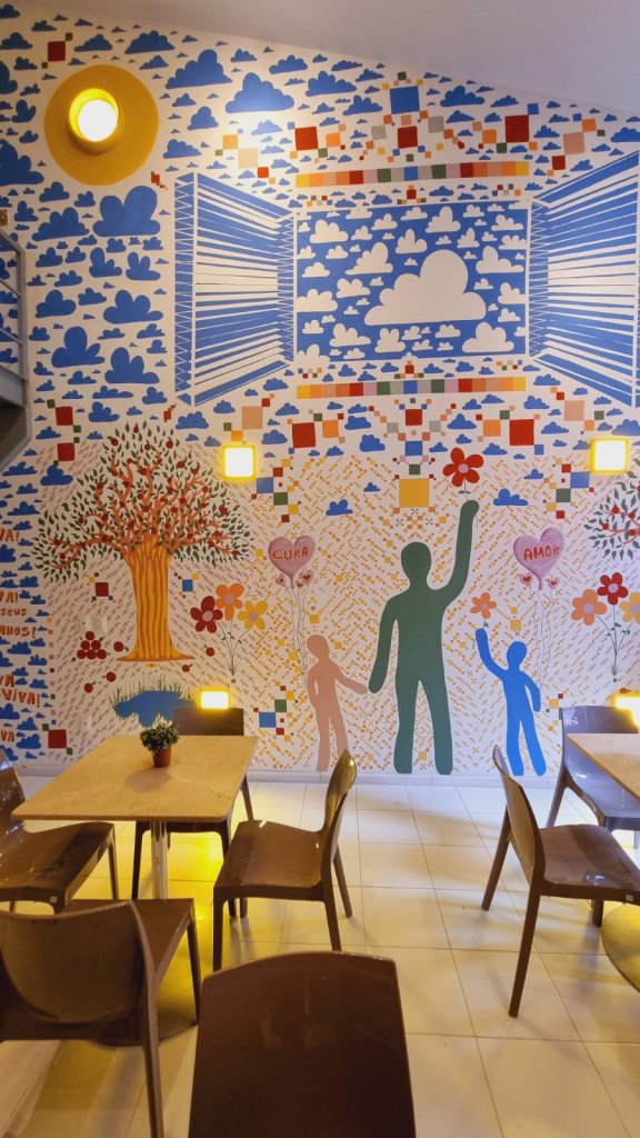 Cada profissional ficou responsável pelas áreas da casa, que acolhe crianças e adolescentes em tratamento oncológico. A proposta foi criar espaços afetivos que tirassem dos usuários a sensação de estar em um local de tratamento e transmitissem conforto e aconchego.
