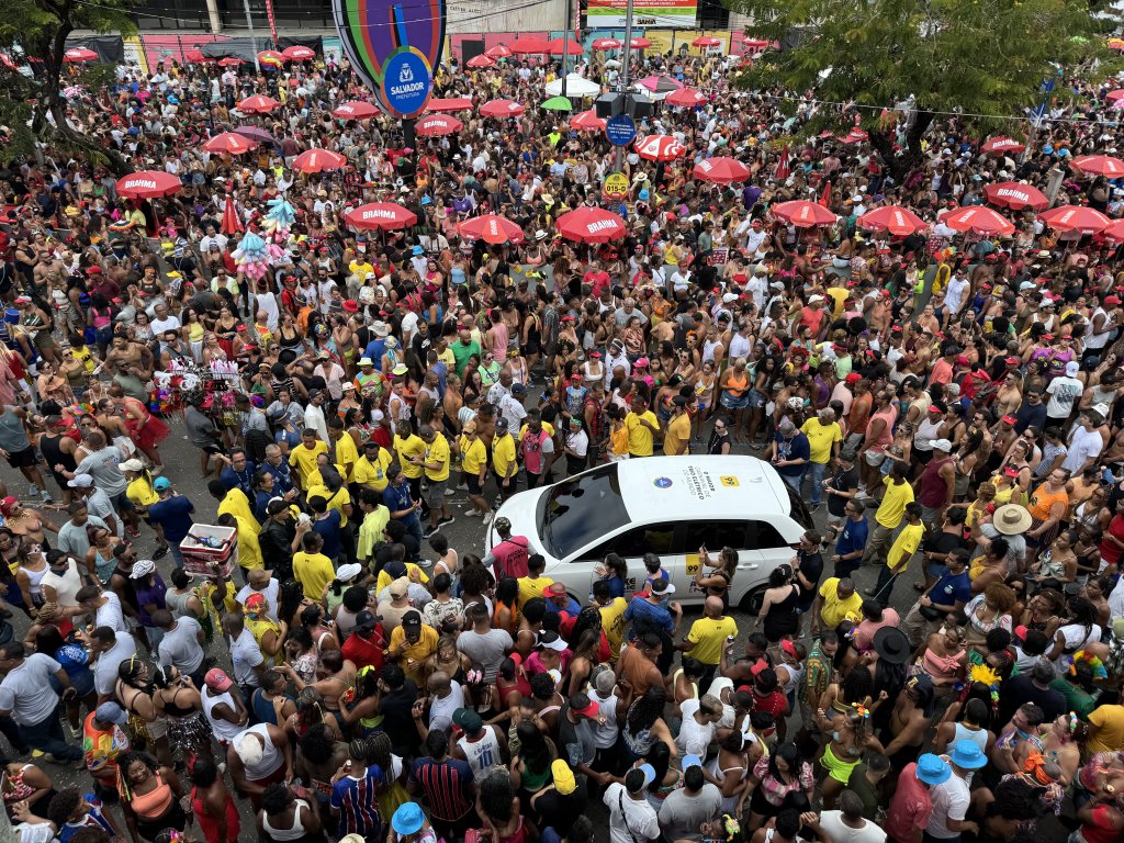 *Além do aperto e empurra-empurra, outro fato que me preocupou foi o carro ser um BYD. Se pega um engarrafamento de trio, queria ver acharem um carregador pro "golfinho" no meio do circuito.