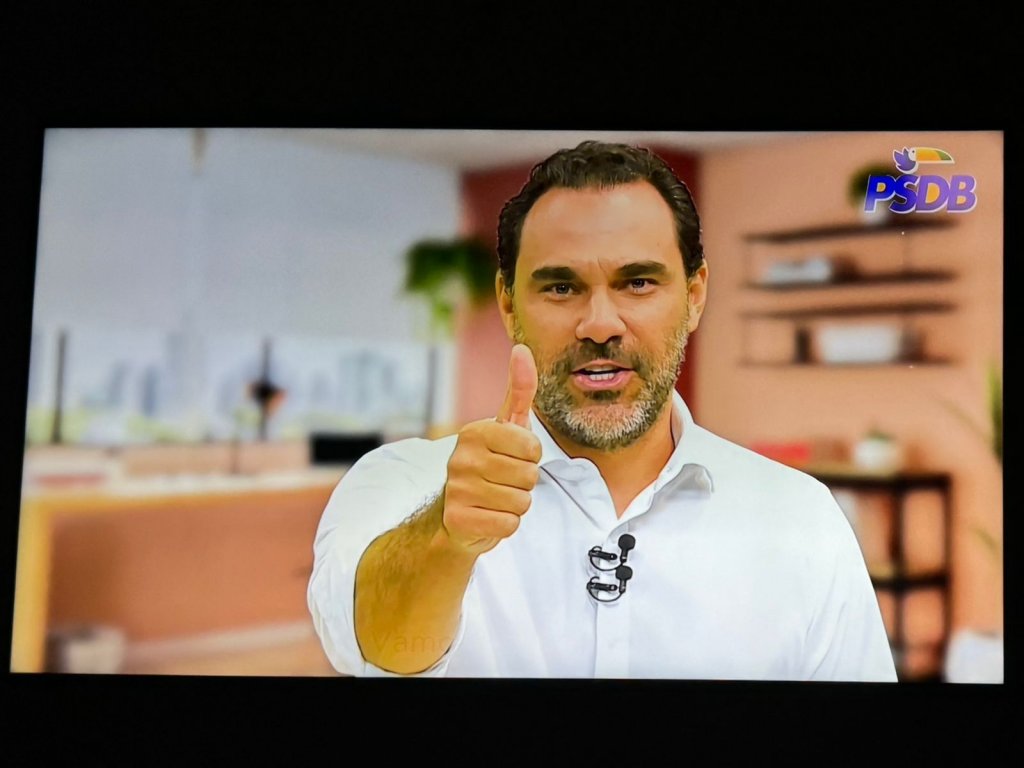 *Já entre os tucanos a coisa tá feia. Tá faltando verba até pra chroma key. O jeito foi reaproveitar um cenário do estúdio e embaçar pra ninguém reconhecer: