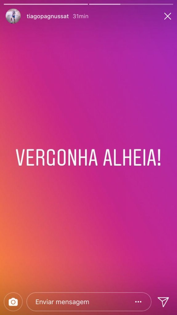 Capitão da equipe do Bahia, o zagueiro Tiago disse estar envergonhado pela forma que o Ba-Vi deste domingo (18) se encerrou no Barradão. Antes de deixar o estádio, o jogador declarou que viu uma conversa entre o técnico Vagner Mancini e os atletas do Vitória e definiu a atitude da equipe rubro-negra como um "apequenamento". "Vi que ele [Mancini] pediu para os jogadores se retirarem, mas não quero julgar. Para mim ficou bem nítido. O futebol vem crescendo ao longo dos anos e é cada vez mais raro disso acontecer. É raro uma equipe se apequenar dessa forma. A instituição do Vitória não está no nível do que aconteceu hoje", declarou. Ainda segundo o defensor, o fato de vencer o jogo pela insuficiência de jogadores da outra equipe não foi bom o suficiente. "É lamentável. Acreditamos que conseguimos os três pontos, mas é um triunfo que não tem sabor. Foi ridículo e o futebol perde com isso. A ação que o adversário teve foi lamentável", completou. Em seu Instagram, o atleta usou a ferramenta "stories" para se manifestar sobre o ocorrido. Confira: