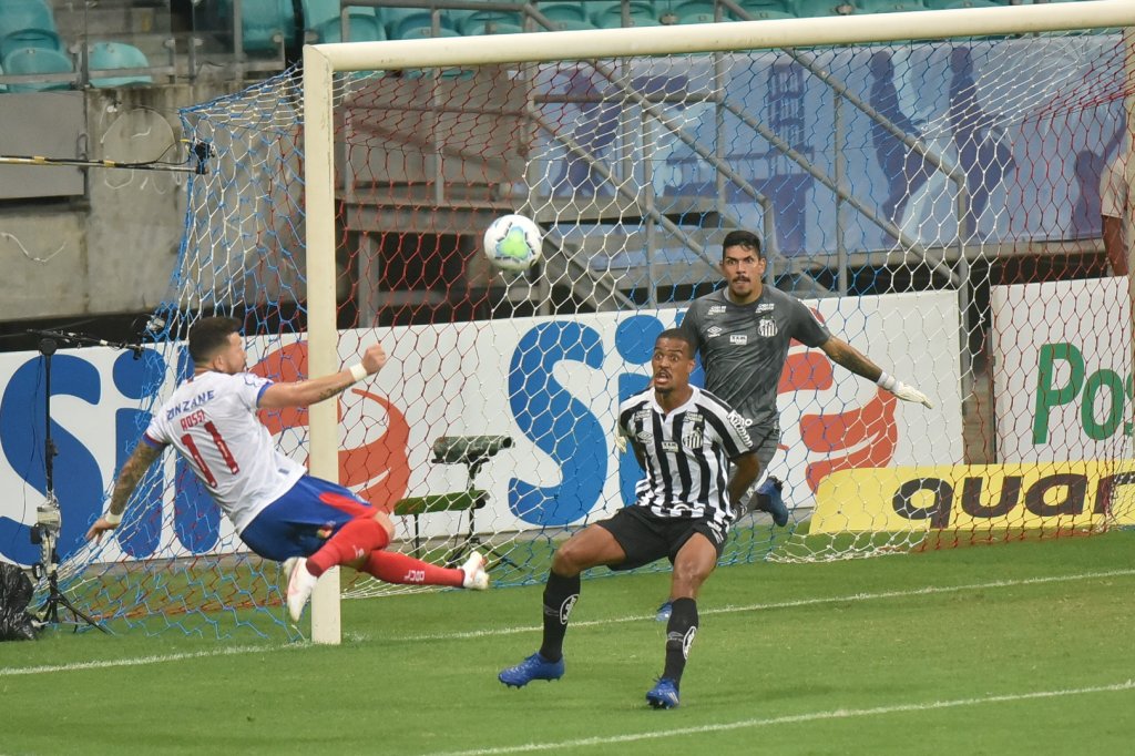 O Tricolor seguiu dominante na partida. Aos 21, Nino Paraíba invadiu a área, mas finalizou mal mandando a bola por cima da trave paulista. No minuto seguinte, o Peixe desperdiçou uma boa chance com Vinícius Balieiro. Jogada individual construída por Ângelo pelo lado direito que foi à linha de fundo. Douglas saiu mal e o atacante tocou para trás. Com o gol vazio, o volante santista chutou por cima da trave. A resposta do Bahia também veio na sequência com Gilberto. O camisa 9 soltou a bomba de fora da área e a bola passou por cima da trave.