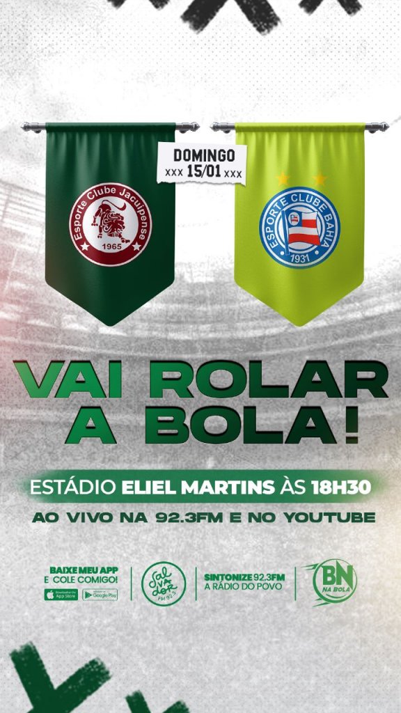 A bola vai rolar neste domingo (15), às 18h30, na Arena Valfredão, em Riachão do Jacuípe, no duelo entre Jacuipense e Bahia, válido pela segunda rodada do Campeonato Baiano. E a equipe BN Na Bola, da Rádio Salvador FM 92,3, irá transmitir esse confronto.