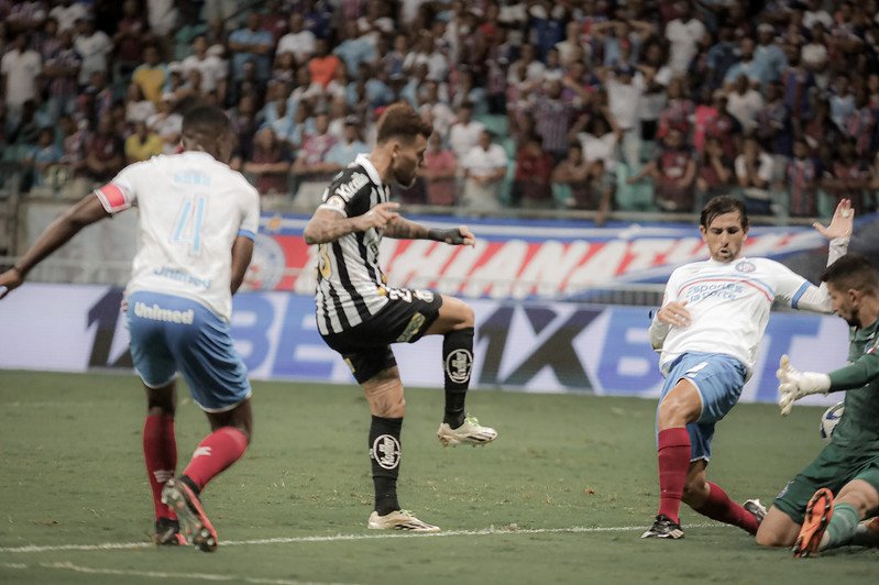 Após a pressão santista, o Tricolor tentou responder aos seis minutos, através de jogada ensaiada na cobrança de falta. Ademir mandou a bola para área, Vitor Hugo desviou de cabeça, mas mandou para direto para fora. Dois minutos depois, a torcida do time baiano pediu pênalti na jogada de Thaciano. O meia foi lançado por Gilberto, tentou dar um chapéu e caiu dentro da área na disputa com Joaquim. Mas o Ramon Abatti Abel mandou o jogo seguir.