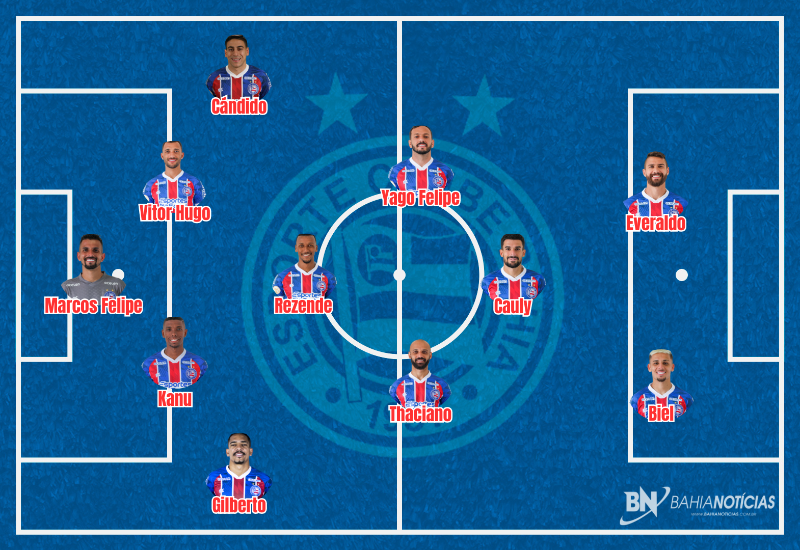 O Tricolor baiano foi montado pelo técnico Rogério Ceni com Marcos Felipe; Gilberto, Kanu, Vitor Hugo e Camilo Cándido; Rezende, Yago Felipe, Thaciano e Cauly; Biel e Everaldo.