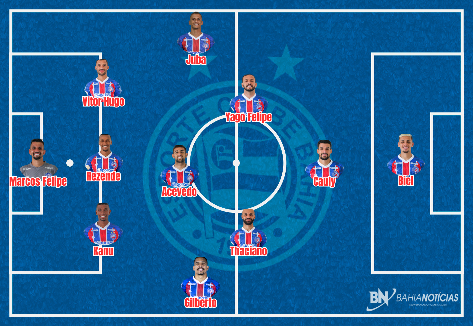 Bahia: Marcos Felipe; Gilberto, Kanu, Vitor Hugo e Cándido; Rezende, Acevedo, Thaciano e Cauly; Biel e Mingotti (Ratão). Técnico: Rogério Ceni.