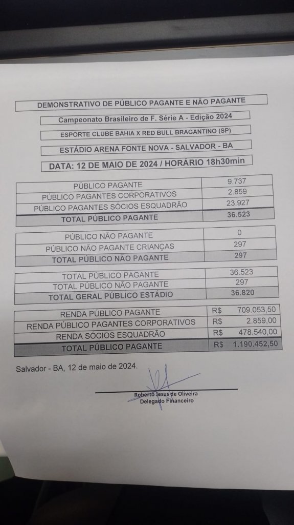 Bahia e Red Bull Bragantino se enfrentaram neste domingo (12), pela sexta rodada do Campeonato Brasileiro. Garantindo o seu terceiro triunfo consecutivo e há cinco jogos sem perder, o Esquadrão venceu o Massa Bruta pelo placar de 1 a 0. No total, 36.820 pessoas estiveram presentes na Casa de Apostas Arena Fonte Nova para uma renda de R$ 1.190.452,50.