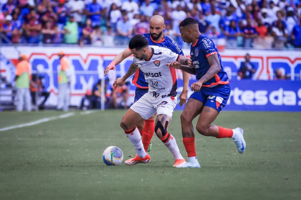 Bahia e Vitória se enfrentaram na tarde deste domingo (11), em partida válida pela 22ª rodada do Campeonato Brasileiro de 2024. O duelo marcou o Ba-Vi de número 499 na história. No primeiro tempo, o Bahia conseguiu colocar em prática seu desenho tático e abriu o placar com Everton Ribeiro, aos 14 minutos. No segundo tempo, o Vitória comandou as ações do jogo, não conseguiu converter as chances e viu Luciano Juba aumentar o placar para o tricolor nos acréscimos do segundo tempo.