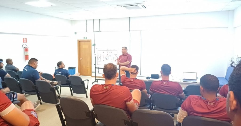 O foco da palestra foi a troca de experiências, o aprimoramento das práticas de formação e a construção de um ambiente positivo para o desenvolvimento dos atletas.