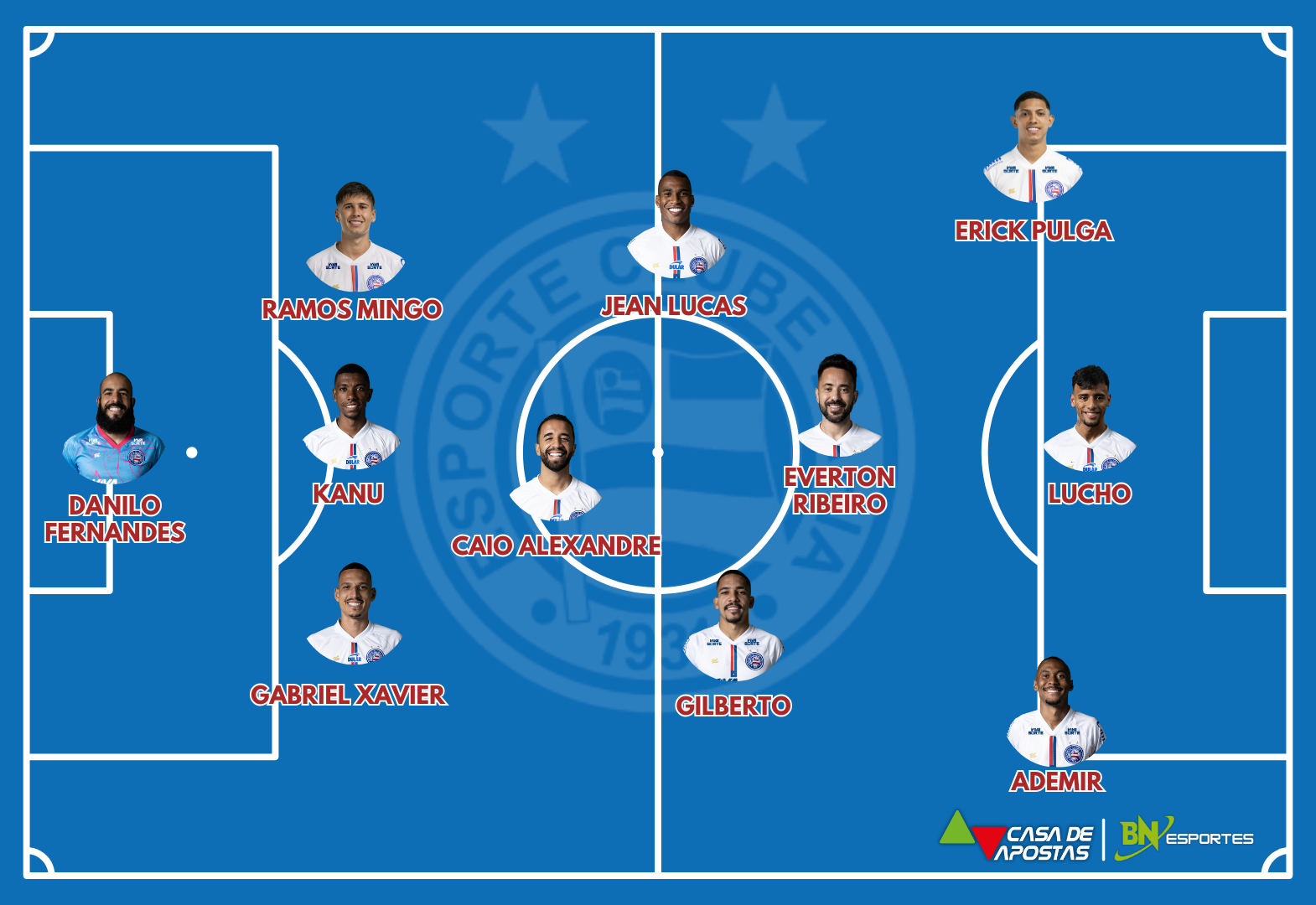Bahia: Danilo Fernandes; Gilberto, Gabriel Xavier, Kanu e Ramos Mingo; Caio Alexandre, Jean Lucas e Everton Ribeiro; Pulga, Ademir e Lucho Rodríguez. Técnico: Rogério Ceni.
