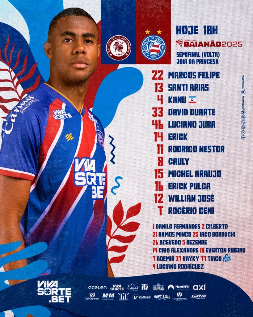 Falta apenas mais um passo! Jacuipense e Bahia se enfrentam na noite deste domingo (9), às 18h, no confronto de volta das semifinais do Campeonato Baiano. Na ida, o Leão do Sisal levou a melhor sobre o Esquadrão e venceu na Casa de Apostas Arena Fonte Nova pelo placar de 2 a 1. Agora, no Jóia da Princesa, ambas as equipes já foram escaladas para buscarem a vaga na grande final.