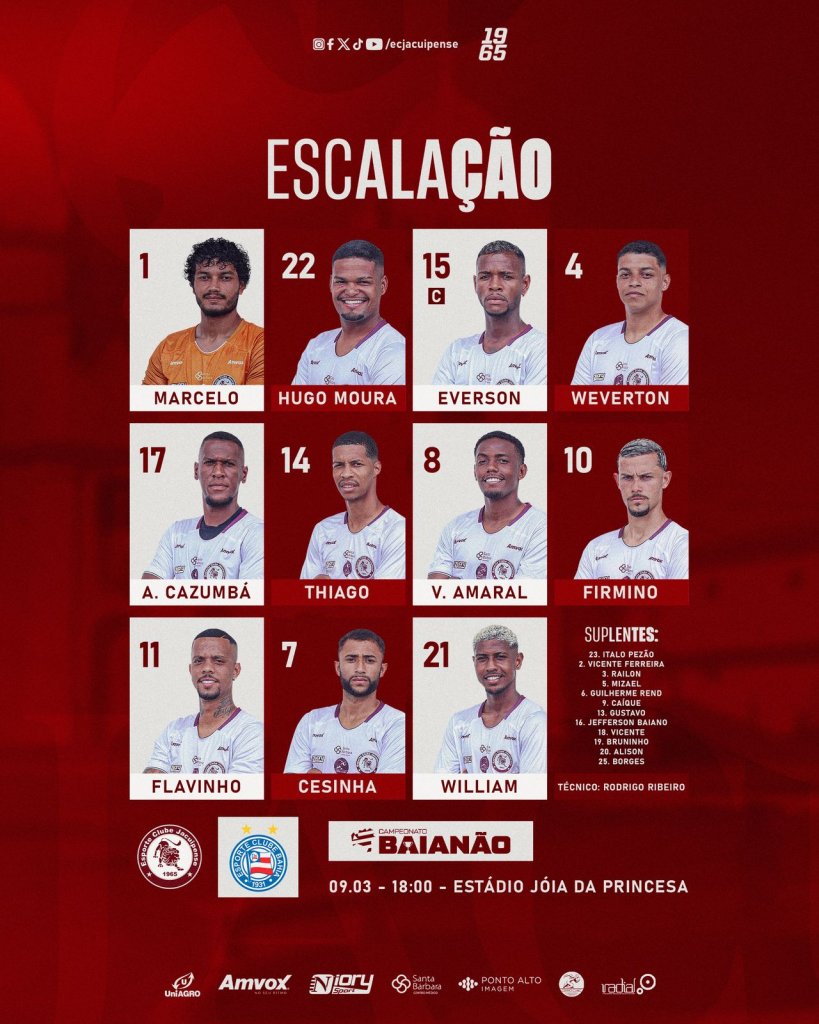 Confira as escalações de Jacuipense x Bahia pela semifinal do Baianão