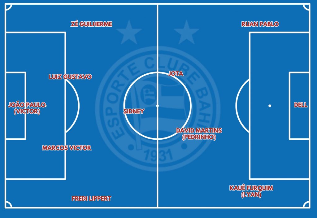 Bahia: João Paulo; Fredi, Marcos Victor, Luiz Gustavo e Zé Guilherme; Sidney, Jota e David Martins (Pedrinho); Ruan Pablo, Kauê Furquim e Dell. Técnico: Rogério Ceni