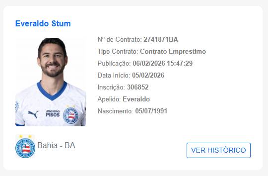 Com isso, o jogador está liberado para compor o grupo em jogos oficiais. Invicto na temporada, o Tricolor encara a Juazeirense no próximo domingo (8), às 16h, pela 7ª rodada do Baianão 2026.