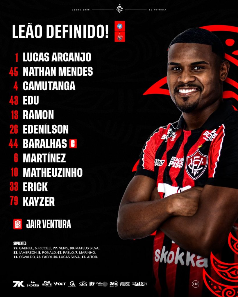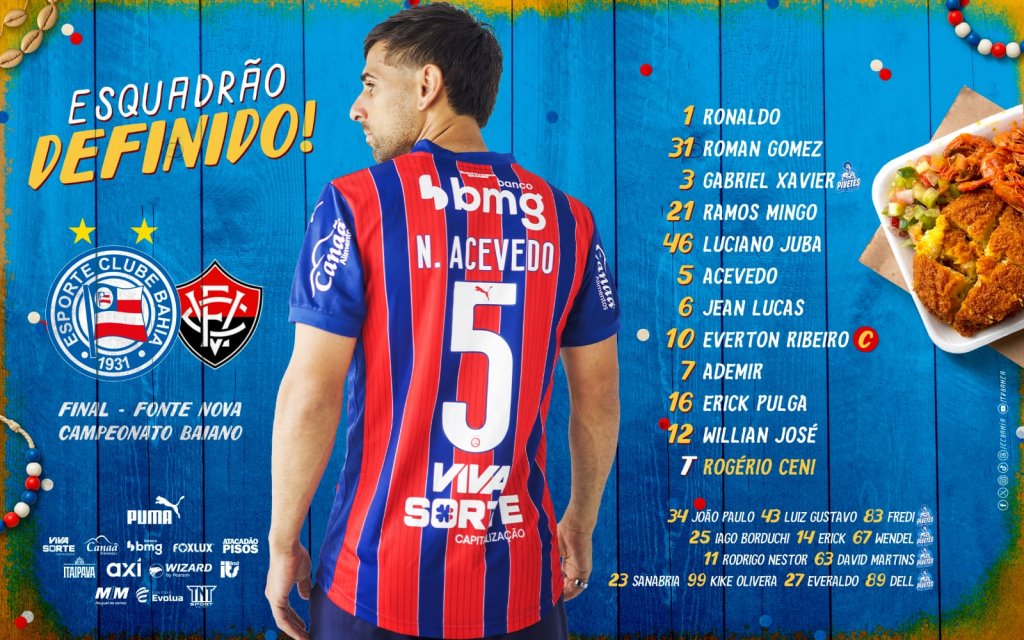 Confira as escalações oficiais de Bahia x Vitória pela grande final do Baianão 2026