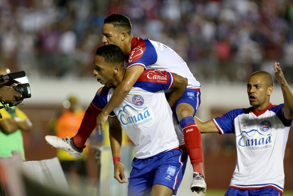 Caíque balançou a rede contra o Atlético de Alagoinhas, pelo Baianão | Foto: Felipe Oliveira / Divulgação / EC Bahia