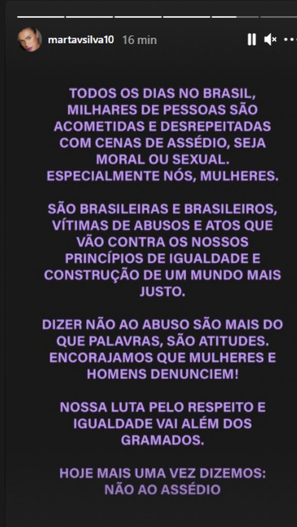 Marta foi uma das jogadoras que postou o manifesto (Foto: Reprodução | Instagram)