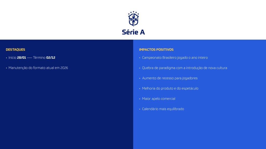 A Confederação Brasileira de Futebol (CBF) anunciou, na manhã desta quarta-feira (1º), o novo calendário oficial das competições nacionais de 2026. O evento, realizado na sede da entidade no Rio de Janeiro, contou com a presença de dirigentes de clubes das Séries A, B, C e D.