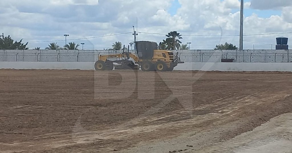 A fase atual da obra envolve o nivelamento do campo, etapa essencial para a implantação do novo gramado.