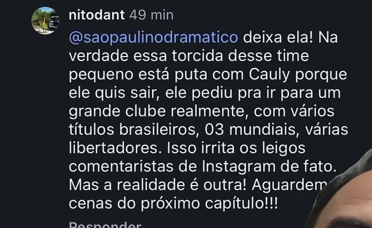 Uma resposta nas redes sociais envolvendo o pai do meia Cauly acabou gerando forte repercussão entre torcedores do Bahia. A manifestação ocorreu na última segunda-feira (13) após críticas direcionadas ao jogador, atualmente no São Paulo Futebol Clube.