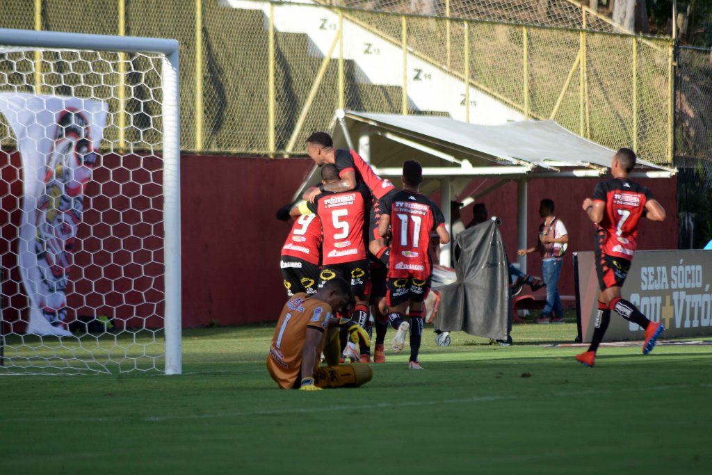 Caíque Souza cruzou na área aos oito minutos. Emílio se jogou e mandou de carrinho contra o próprio patrimônio. Foi o segundo gol do Vitória na partida.