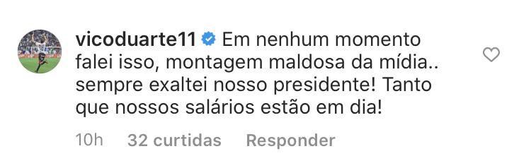 Vico diz que Vitória deve salários, volta atrás e ataca à imprensa: 'Montagem maldosa'