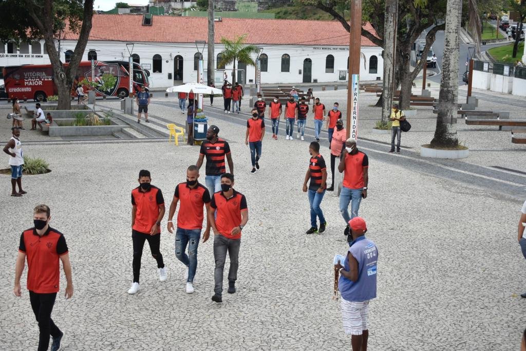 Em meio a preparação para encarar o Confiança no chamado "jogo de seis pontos", o Vitória não ficou restrito apenas aos treinamentos no campo. Na manhã desta quinta-feira (7), o elenco subiu a Colina Sagrada e foram até a Igreja Nosso Senhor do Bonfim, na Cidade Baixa, em Salvador. Na disputa da Série B, o Leão vive situação complicada na luta contra o rebaixamento.