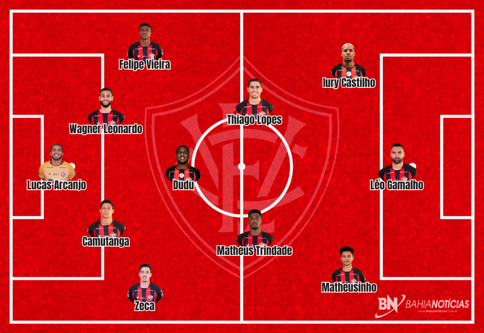 No Vitória, Léo Condé escolheu a seguinte formação: Lucas Arcanjo; Zeca, Camutanga, Wagner Leonardo e Felipe Vieira; Matheus Trindade, Dudu e Thiago Lopes; Matheusinho, Léo Gamalho e Iury Castilho.