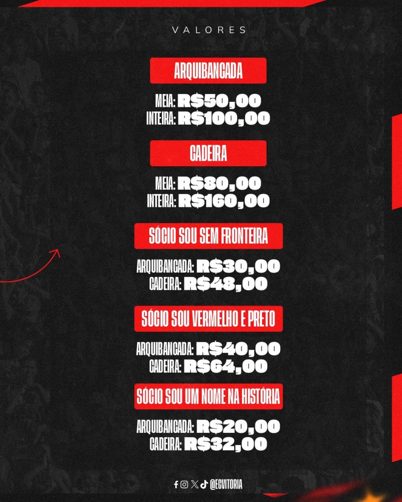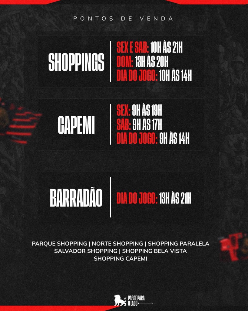 Veja abaixo os locais, preços e valores divulgados pelo Rubro-Negro Baiano: