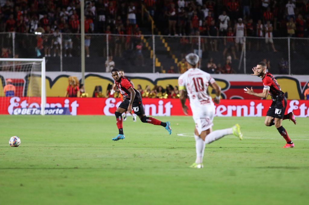 O goleiro Patyego saiu para evitar a chegada de Fabri e chutou a bola em cima do zagueiro Everton Dias, que quase sobrou para o desempate do Vitória, mas a bola foi pela linha de fundo aos 31 minutos.