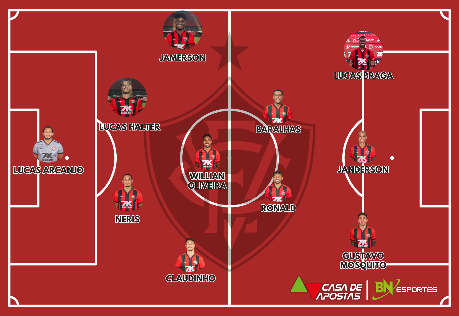 Vitória: Lucas Arcanjo; Claudinho, Neris, Lucas Halter e Jamerson; Willian Oliveira, Gabriel Baralhas e Ronald; Gustavo Mosquito, Lucas Braga e Janderson. Técnico: Thiago Carpini.