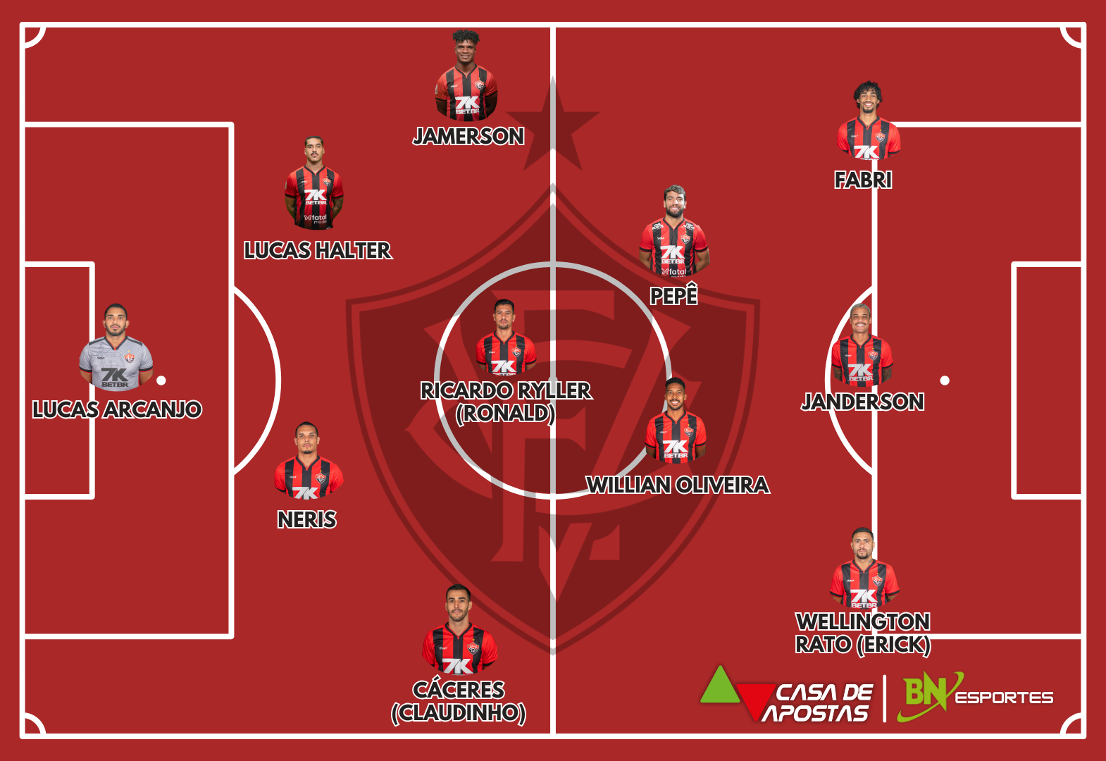 Vitória: Lucas Arcanjo; Raul Cáceres (Claudinho), Neris, Lucas Halter e Jamerson; Ricardo Ryller (Ronald), Willian Oliveira (Ronald) e Pepê; Wellington Rato (Erick), Fabri e Janderson. Técnico: Thiago Carpini.