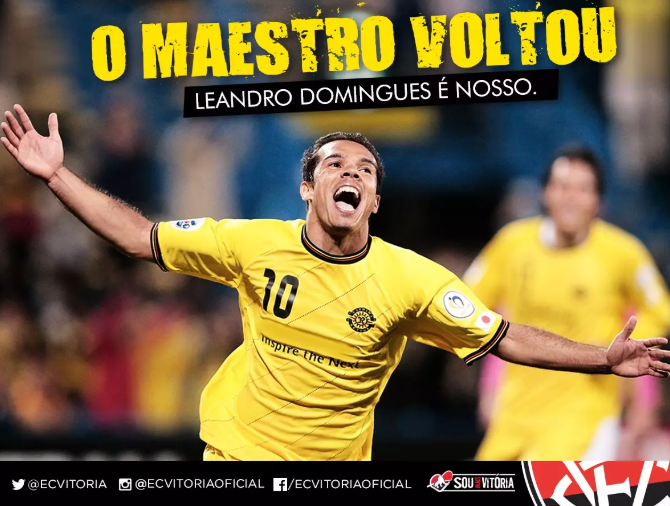 Agora com 33 anos, o retorno de Leandro Domingues ao Vitória naquele ano foi tratado como uma grande contratação da diretoria rubro-negra, que anunciou a transferência do craque como "o retorno do maestro".