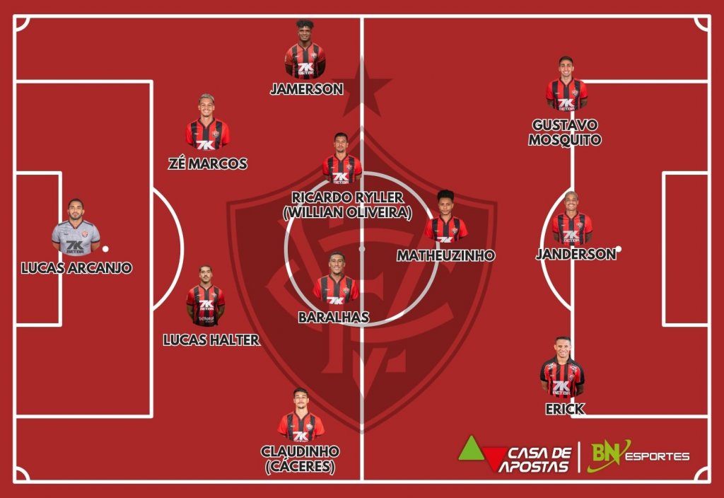 Vitória: Lucas Arcanjo; Claudinho (Cáceres), Lucas Halter, Zé Marcos e Jamerson; Baralhas, Ricardo Ryller (Willian Oliveira) e Matheuzinho; Gustavo Mosquito, Erick e Janderson. Técnico: Thiago Carpini.