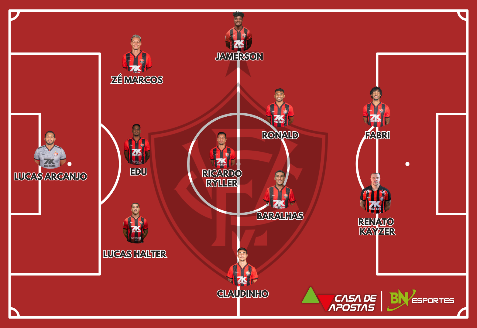 Vitória: Lucas Arcanjo; Lucas Halter, Edu e Zé Marcos; Claudinho, Ricardo Ryller, Baralhas, Ronald e Jamerson; Fabri e Renato Kayzer. Técnico: Thiago Carpini