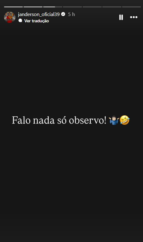 Em tom de provocação, o ex-atacante do Leão escreveu: "Falo nada, só observo". Alvo de críticas da torcida do Vitória durante a sua passagem no Barradão, Janderson fez 63 partidas com a camisa rubro-negra, com 11 gols e quatro assistências. O jogador é o artilheiro do Vitória na temporada, com oito gols em 34 jogos.