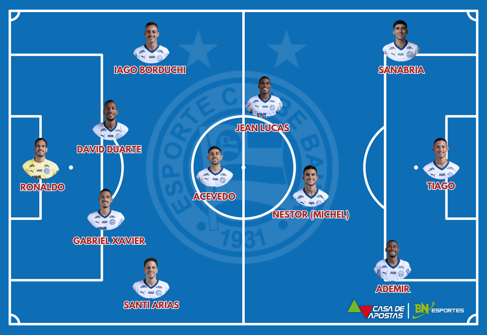 Bahia: Ronaldo; Santi Arias, Gabriel Xavier, David Duarte e Iago Borduchi; Acevedo, Jean Lucas e Rodrigo Nestor; Ademir, Tiago e Sanabria. Técnico: Rogério Ceni.