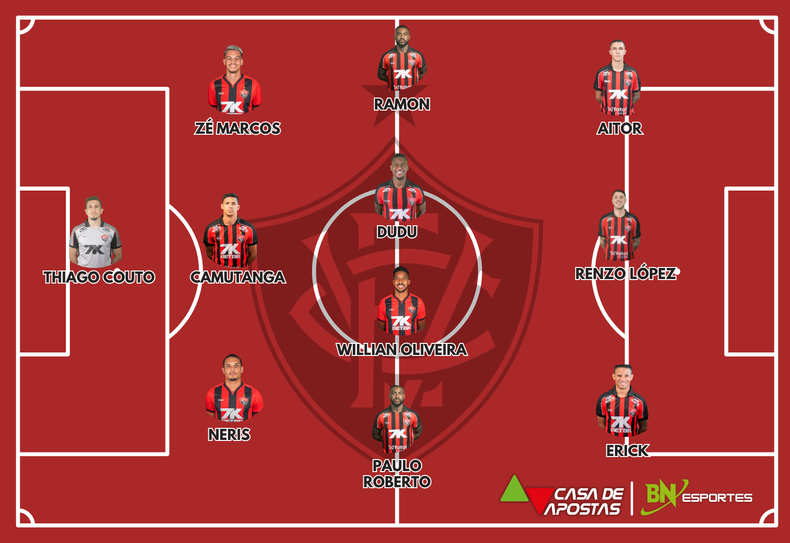 Vitória: Thiago Couto; Neris, Camutanga e Zé Marcos; Paulo Roberto, Willian Oliveira, Dudu e Ramon; Erick, Aitor e Renato Kayzer. Técnico: Jair Ventura.